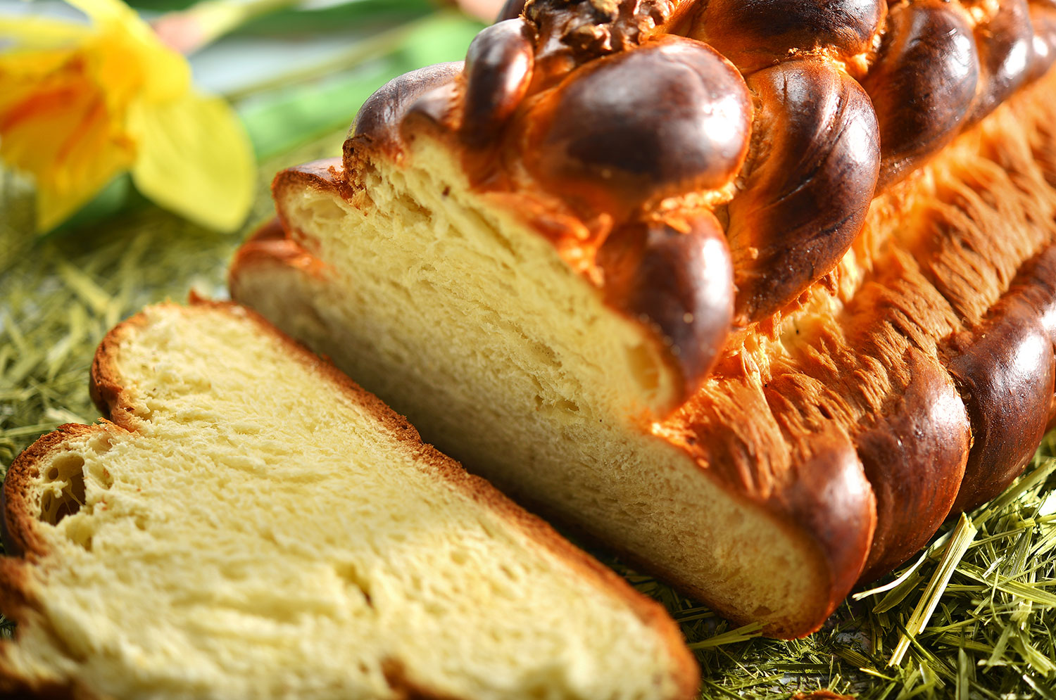 Alle Zutaten miteinander vermengen bis ein schöner glatter Teig entsteht und anschließend 5 Minuten gehen lassen. Danach den Teig in 14 gleich große Stücke aufteilen und daraus jeweils gleich dicke Stränge formen. Nun zwei 6er-Striezel flechten. Anschließend mit einem Teigholz leicht über den ersten Striezel rollen und den zweiten darauf setzen. Dann die beiden letzten Teigstränge zu einem kleinen Zopf flechten und ebenfalls obendrauf legen. Den Osterstriezel nun auf ein mit Backpapier ausgelegtes Backblech setzen und zugedeckt etwa 50 – 60 Minuten gehen lassen. Danach den Striezel mit Ei bestreichen und bei 180°– 190° C für 25 – 35 Minuten backen.